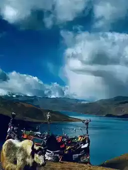 Leaving the city, I arrived at Yamdrok Lake. The blue of the lake was so vivid it felt unreal, as if it were a color crafted by the hands of a deity rather than a natural phenomenon. The wind swept across the water, and the silent mountains surrounded me. Standing there, I felt the restlessness, anxiety, and burdens of reality within me dissipate like grains of sand carried away by the breeze.