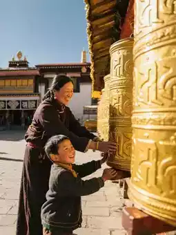• Morning: Start a Tibetan costume parent-child photo shoot at Barkhor Street (costumes rent from 50 RMB, including simple braiding), transform into little Zhuoma or little Zaxi, shoot classic scenes like prayer wheels, red walls, Tibetan-style gates, leaving unique family photos.