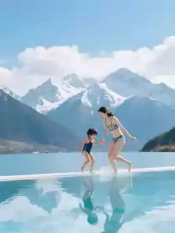 Known as the "Best Hot Spring in Western Sichuan," Gergou Hot Spring is rich in 17 trace elements. The 45℃ constant temperature pool has a shallow area designed for children, where kids can play with water guns while learning fun facts about how the hot spring water nourishes the body. We recommend visiting the mountain hot spring area at dusk, soaking in the open-air pools surrounded by snow mountains while watching the sunset dye the clouds golden pink; at night, the indoor hot spring in the main building is even more thoughtful, with anti-slip floors and a constant temperature system, so even very young children can play safely.