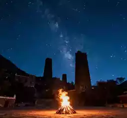 ✔️ New Village Viewing Platform: Capture panoramic views of the old village with watchtowers and snow-capped mountains in the frame