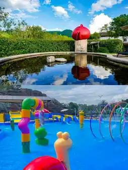 🌿Walking into the hotel, the warm and atmospheric atmosphere hits your face. Hot springs, swimming pools, water parks... everything is available. The hotel rooms are simply and elegantly decorated. Standing on the terrace, you can see the lush green mountains and forests. Push the windows open and let the fresh air fill the whole room to start your day.