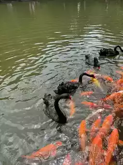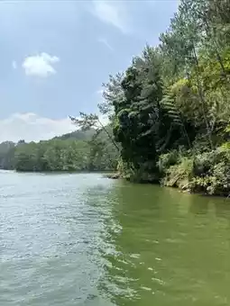 In the early morning, we boarded a cruise boat to explore the lake. The boat slowly departed from the dock, its bow parting the calm waters, sending ripples across the surface. The azure waters met the clear sky, and in the distance, Guanzhai Mountain loomed faintly through the morning mist, like an ink-wash painting gradually unfolding. As the boat glided across the lake, a refreshing breeze brushed our faces, dispelling the summer heat.