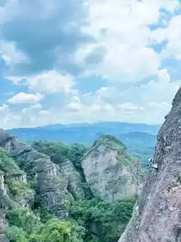 After the performance, we continued our journey, encountering bizarre rock formations and peculiar forests along the way. Some resembled eagles poised for flight, leaving us in awe of nature's craftsmanship. Riding an elevator up the mountain was a novel experience—our feet spared the climb! At Longevity Pavilion, we leisurely watched the clouds drift by. The rolling peaks, lush and verdant, seemed like masterpieces meticulously carved by nature.