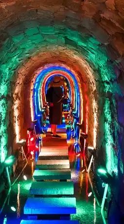 Walking into the village's stone tunnel with my mother, who is also an old child at heart, felt like stepping into a kaleidoscope, with the sea on the other side of the tunnel.