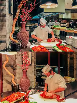 🌟The Lanyuan Restaurant at Fuzhou Guian Creek Mountain Hot Spring Resort is a highly acclaimed restaurant with a simple and elegant decor and a pleasant environment, making it a great place for family gatherings. The buffet here is rich in variety, with fresh ingredients, and the food is cooked by a lovely chef, and the taste is very good.