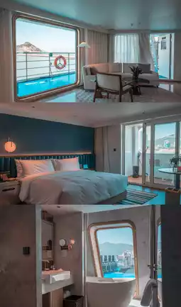 🛏【Room Types/Layout】: Features 52 uniquely styled guest rooms and suites, including cozy family-themed rooms and captain’s cabin-themed suites.