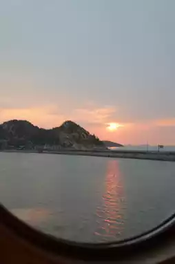 Checking in at the cruise ship hotel~ Here, I witnessed the sunset returning to the mountains and sea~