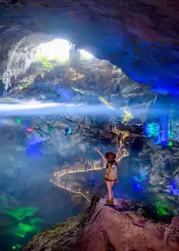 A National 5A scenic spot! Known as "Guangdong's Premier Underground River"! This massive natural limestone cave formed 250 million years ago! Inside, you'll find bizarre rock formations in a kaleidoscope of colors and stalactites of various shapes. The temperature remains around 22°C year-round, making it a perfect summer retreat in Guangdong~