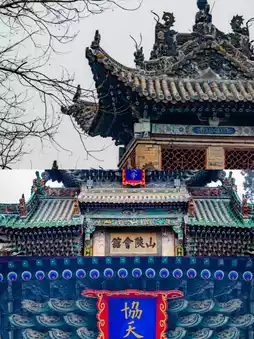 This is a group of buildings that combines the temple of 'Wusheng' Guan Yu and the guild hall, which was jointly built by Shanxi and Shaanxi businessmen. It consists of the mountain gate, the theater building, the sandwich building, the bell and drum tower, the north and south watch towers, the Guandi main hall, and the Spring and Autumn Pavilion🛕.