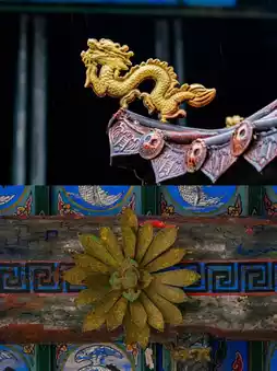 The Spring and Autumn Pavilion is the tallest building in the guild hall, and the eaves between the columns have wooden carvings, with rich and diverse content🖼.