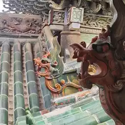 Glazed decorations: Glazed walls and tiles add vibrant colors to the guild hall. The patterns of dragons and phoenixes, and the Eight Immortals on the glazed walls, shine brilliantly under the sunlight, reflecting the exquisite craftsmanship of ancient glazed products.