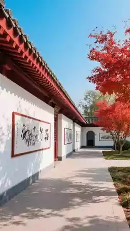 🔹 White walls, gray tiles + red maple corridor, the artistic atmosphere is fully charged 💯