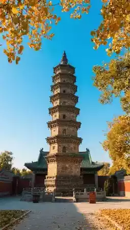 🔹 Tang Dynasty pagoda with yellow ginkgo, the ultimate spot for ancient-style photography!