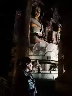 🔸The reclining Guanyin behind is a rare male image. According to legend, "when asked why Guanyin sits upside down, she sighed that sentient beings refuse to turn back."