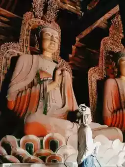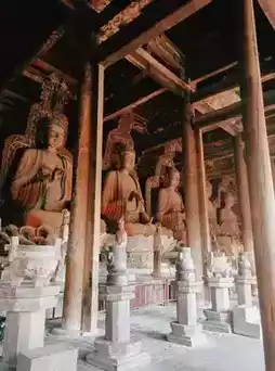 🗿 The most precious treasures in the Main Hall are 23 Liao Dynasty colored sculptures, including the world's oldest, largest and most exquisite Liao Dynasty painted clay Buddha statue group "Seven Buddhas of the Past", as well as 14 Bodhisattvas and two Vajrapani. These Buddha statues are magnificent, especially the Vipaśyin Buddha in the center, which is 9.5 meters tall.