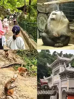 South Gate➠White Elephant Spring➠Nine-Curve Path➠Hexagonal Stone Pavilion➠Hongfu Temple (lots of monkeys, don’t continue to climb up, go to the left, pass by the temple parking lot)➠Moon Well➠Zoo (red pandas are here)➠Tunnel➠Panda House➠Xiaomei Bay➠East Gate