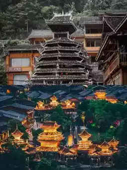 3️⃣ 🏮「Zhaoxing Dong Village·Ritual Drum Tower」—— Spirited Away Nightscape