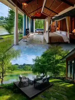 "Wuyue Mountain · Fishing Retreat Wild Luxury Resort Village" features superbly refined decor, with delightful surprises hidden in every corner! It also has an incredibly photogenic communal platform, perfect for snapping Instagram-worthy shots!