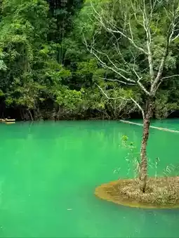 It includes underground rivers, sinkholes, limestone formations, and forests growing from rock.