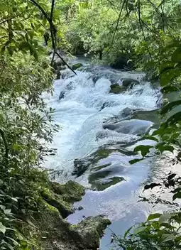 The moment you step in, it feels like entering a real-life Wizard of Oz! 🌿 The pool water is as green as a huge emerald, so clear you can see the stones at the bottom. When the sunlight shines down, the water surface sparkles beautifully, breathtakingly so. I heard this is a unique karst landform underground river exposure, and I have to say: nature is just amazing!
