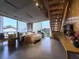 Round bed with extra-large floor-to-ceiling windows🌄 Pull back the curtains to flowing sea of clouds and mountain views