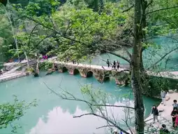Libo's Small Seven Arch Bridge is renowned as the "Emerald on Earth," celebrated for its karst landscape and exquisite natural scenery. One of the most iconic spots within the area is the ancient, elegant Small Seven Arch Bridge, which rests serenely over a stretch of emerald-green, crystal-clear water. Having withstood centuries of wind and rain, the bridge still stands firm. The river glows with a jade-like hue, reflecting the dense forests along its banks and composing a tranquil yet breathtaking landscape. This picturesque scene brings a sense of peace and wonder, making it a place visitors are reluctant to leave.