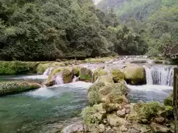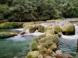 The 68-tiered waterfalls in Libo's Small Seven Arch Bridge area present a remarkable karst landscape wonder. Crystal-clear waters cascade through dense forests over moss-covered rocky riverbeds, forming dozens of small waterfalls and deep pools in layered, harmonious progression. The water alternates between rushing torrents and gentle streams, complementing the lush vegetation on both banks to create a dynamic and exquisite natural painting. Visitors can walk along the pathways to observe this masterpiece of nature up close, experiencing the awe-inspiring work of natural artistry.
