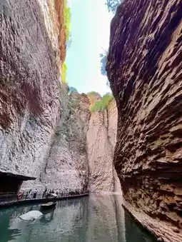 2️⃣ Spectacular Zhangshi Rock Formations: Hard red quartz sandstone and shale have been sculpted by geological movements over millions of years, creating cliffs and gorges stretching for tens of kilometers. Peaks rising 1,500-2,000 meters above sea level stand tall, with sheer cliffs showcasing nature's craftsmanship—an ideal geological classroom.