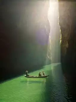 Unique canyon scenery (cliffs, waterfalls, forests, and villages), plus a 300-meter-high suspended plank walkway. A must-see attraction is Qixingzhai.