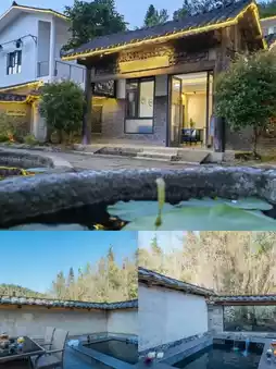 2. The highlight of the homestay is the hot spring room, with an outdoor pool that is quite large, enough for several children to play together. The homestay also has a popular infinity pool with good water quality, backed by mountains, creating a vacation atmosphere.