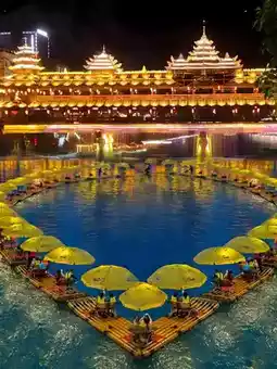 ► 19:00 Enter the Xianxia world of Xuan'en: Gongshui River night cruise × Moda Tower light show × Dong-style Wind and Rain Bridge