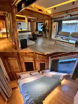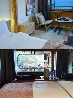 but incorporate many smart elements. The sunshine sprinkles golden light on the quilts, making it very comfortable and cozy~ The terrace offers a wide view, where you can bathe in the sunlight, enjoy the full view of the ancient town, drink tea, watch the snowy night, chat, and admire the stars - a paradise on earth~
