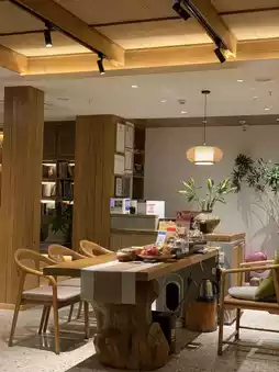 Creating two small courtyards and several public areas, walking into the first floor of the lobby, the decoration style is very warm, with a small courtyard cool pavilion, indoor tea room, cinema bar, dining bar, leisure area