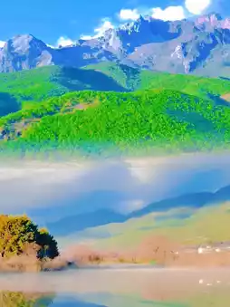 Not Xinjiang, but Lijiang’s Wenhai Village, lakes, grasslands, cattle and sheep... and the snow-capped mountains in the distance, as beautiful as a fairy tale.