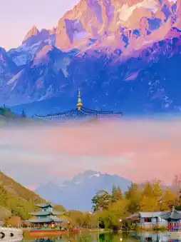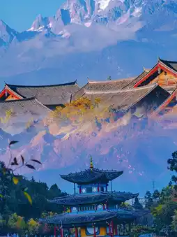 Lijiang's Shwedagon Pagoda and Jade Dragon Snow Mountain complement each other and are impressive.