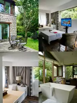 All are single-family cottages in the forest. We live on two floors, with a small garden and two balconies. The first floor is the living room & tea room, and the second floor is the starry bedroom and the bathroom with dry and wet separation. The bathtub is particularly large, and the bedding and toiletries are all luxury hotel configurations.