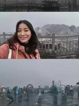 What you need is your body and luck because when we went, the sky was overcast, it was raining, and the fog was thick, you couldn't even see the top of the mountain.