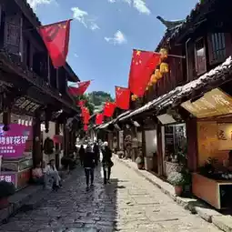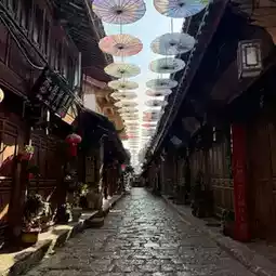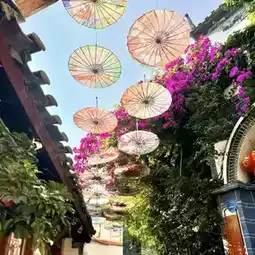 Lijiang Ancient Town is a picturesque blend of history and natural beauty. Its narrow, winding cobblestone streets, lined with traditional Naxi-style wooden buildings, exude timeless charm. Clear canals flow gently alongside willow-lined paths, reflecting lantern-lit bridges in the evening. Flower-filled courtyards and hidden tea houses add to the enchanting atmosphere, while views of Jade Dragon Snow Mountain rise majestically in the background. At dusk, the town glows warmly, with lanterns lighting up its cozy alleys, creating a dreamlike scene that feels like stepping into a living painting.