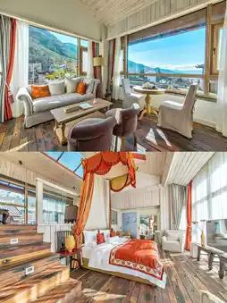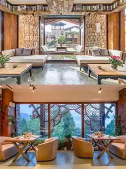 🏡 The hotel's architecture is unique, blending traditional Naxi style with modern design. The wooden structures exude a rustic charm while maintaining comfort and luxury. Inside the rooms, the decor is exquisite and cozy, with large windows that allow you to enjoy the snow-capped mountain views from the comfort of your bed. You'll feel completely immersed in the tranquil and beautiful atmosphere.