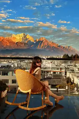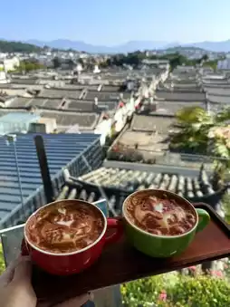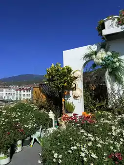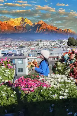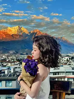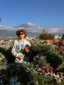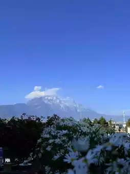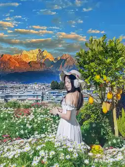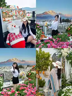 The cafe in the sea of flowers is so beautiful, and the view of Yulong Snow Mountain is right in front of you.