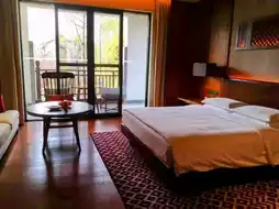 Located in the northern part of Lijiang Old Town, the hotel is connected to a boutique commercial area and luxury villas, and is closer to Shuhe Ancient Town. The expansive grounds are surrounded by ponds and green spaces with bougainvillea gardens, creating a serene environment. The architecture features the colors of the Yunnan Naxi ethnic group, blending with the natural scenery.