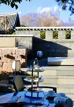 3. The most beautiful moment of staying at the hotel is that whether you are secluded in the villa or walking in the garden, you can see different moments of the Jade Dragon Snow Mountain. In the morning, the golden light shines on the top, and at sunset, it is dim and warm. Sometimes it is hidden in the fog, and sometimes the top of the mountain is full of clouds.