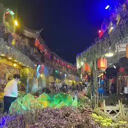 At night, the face of this World Heritage Site is lined with more live music houses🍸 than you can imagine. Each store🏬 puts in its own unique ingenuity, with dazzling lighting💡 and flashy music♫, and professional dancers performing, it feels like concert venues have appeared everywhere. It's easy to see why young people👥 gather in this city. Please enjoy Lijiang at night🌉.