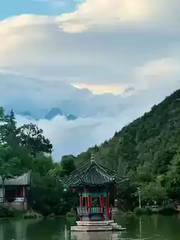 #Get a discount without relying on luck Black dragon pool or Heilongtan in Chinese is a public park and historical site located not far from the old town of Lijiang. What makes this place special is that you can see the Jade Dragon Snow Mountain. However, on the day we went, there were a lot of clouds and fog, so it was hard to see. Normally, the entrance fee is 50 yuan per person. We came in the evening and didn't see the gatekeeper, so we didn't pay the entrance fee. You can walk around and take pictures here. The Black Dragon Pool is hundreds of years old. There is also a cafe inside. This is another place I recommend if you come to Lijiang. It's a pity that if the sky were clear, the view of the Jade Dragon Snow Mountain would be even more beautiful. I'll come back again when I have a chance. 😍