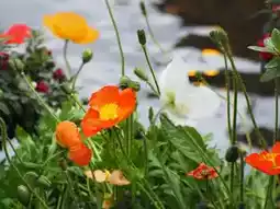 A small canal runs through the city, with many blooming yellow roses, marigolds and impatiens adding color to the atmosphere like you are in a safe place