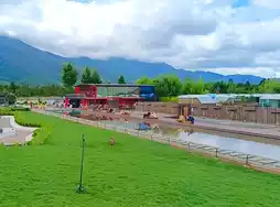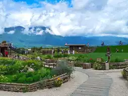 Another charming coffee shop with a stunning backdrop of Jade Dragon Snow Mountain, located near Baisha Village in Lijiang. The cafe is designed with simplicity that harmonizes with the natural scenery. It offers plenty of photo spots, including the popular rooftop view, giant wooden chairs, expansive grass fields, elevated grassy slopes, and the picturesque pondside. Additionally, there is an accommodation zone for tourists to relax and recharge while enjoying the million-dollar view.