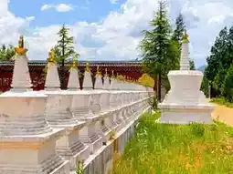 The rows of elephant statues and white Tibetan-style stupas not only showcase the local culture but also create a picturesque scene against the blue sky, making it a perfect spot for photography. If you have time, it's a wonderful place to visit for a leisurely stroll.