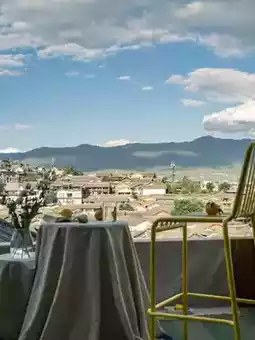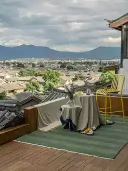 Built on the foundation of Naxi old architecture with added modern Eastern aesthetics, the wooden furniture paired with white ultra-minimalist style is super high-end! There are front, middle, and back courtyards; the middle and back courtyards are built on the hillside in a staggered layout. Standing in the courtyard, you can see the entire Lijiang Ancient Town panorama, especially at sunset when golden sunlight bathes the rooftops—so stunning it leaves you speechless 🌇