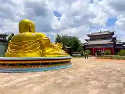 From Lijiang Old Town, take a taxi to the Golden Pagoda Tourist Area. Just 15 minutes later, you'll pass the entrance and see a massive golden seated Maitreya Buddha.