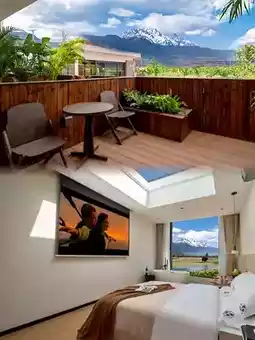The homestay features panoramic floor-to-ceiling windows paired with a large sunny terrace, allowing you to lie down and enjoy the snow mountain views without obstruction; the unique Naxi-style architecture makes every photo look like a masterpiece; 24-hour attentive butler service not only helps plan your itinerary but also solves any unexpected issues; the rooftop starry sky terrace is perfect for lying down and stargazing at night, creating a fully romantic atmosphere.